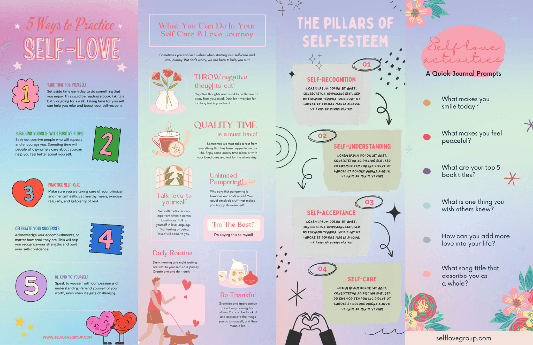Others might lean towards writing weekly, giving themselves time, and listening to their intuition to experiment with what works best for them and ponder over their self-love progress more broadly. Pick a format that fits your style best and lets your true self shine through.